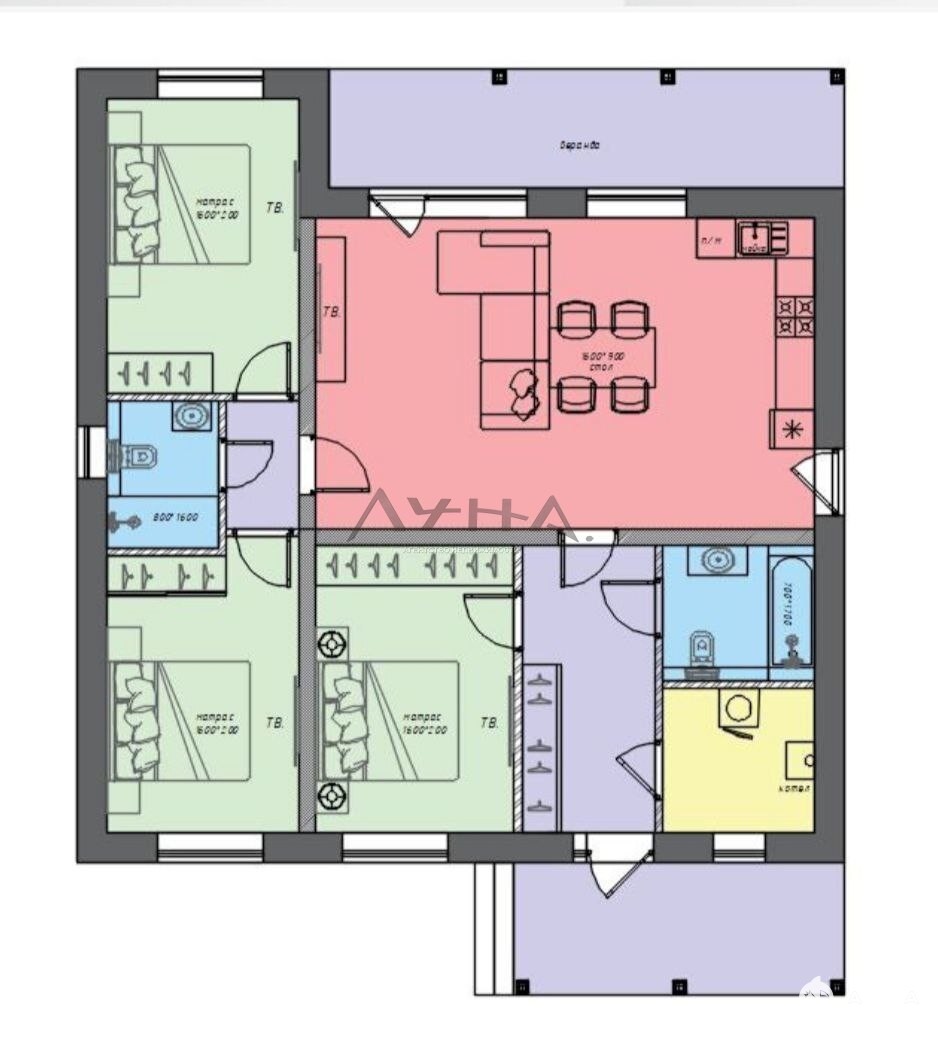 Гoтoвая логичная планировка. 3 изолированные комнаты, большая гостиная-кухня с витражами (свет + «вау»-эффект), 2 с/у, что создает дополнительной комфорт.