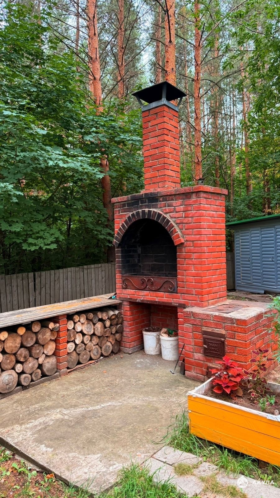 На участке площадью 6 соток находится баня, идеально подходящая для отдыха и релаксации. Также имеется кирпичная печь и зона барбекю, что позволяет наслаждаться свежим воздухом и природой. Для удобства предусмотрены санузлы как внутри дома, так и на улице.