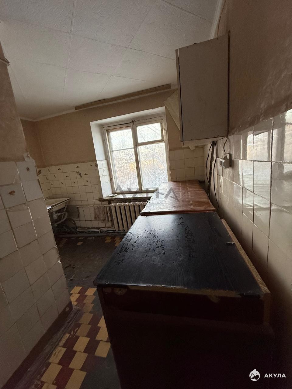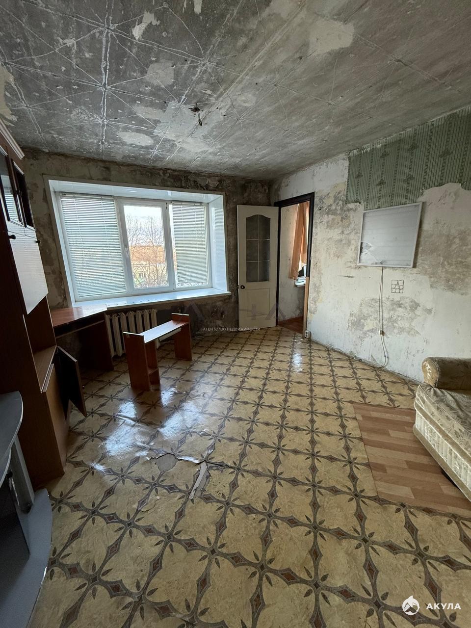 В комнатах пластиковые окна, в остальном требует ремонта.