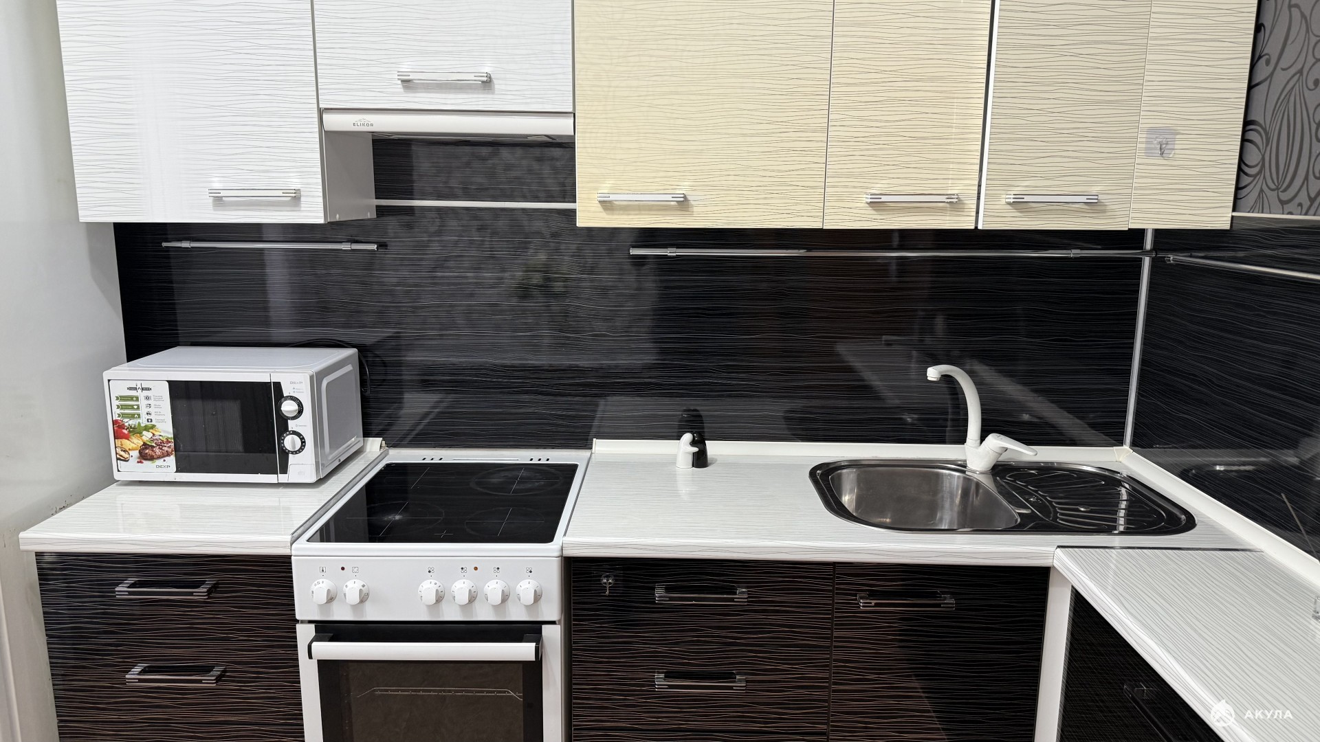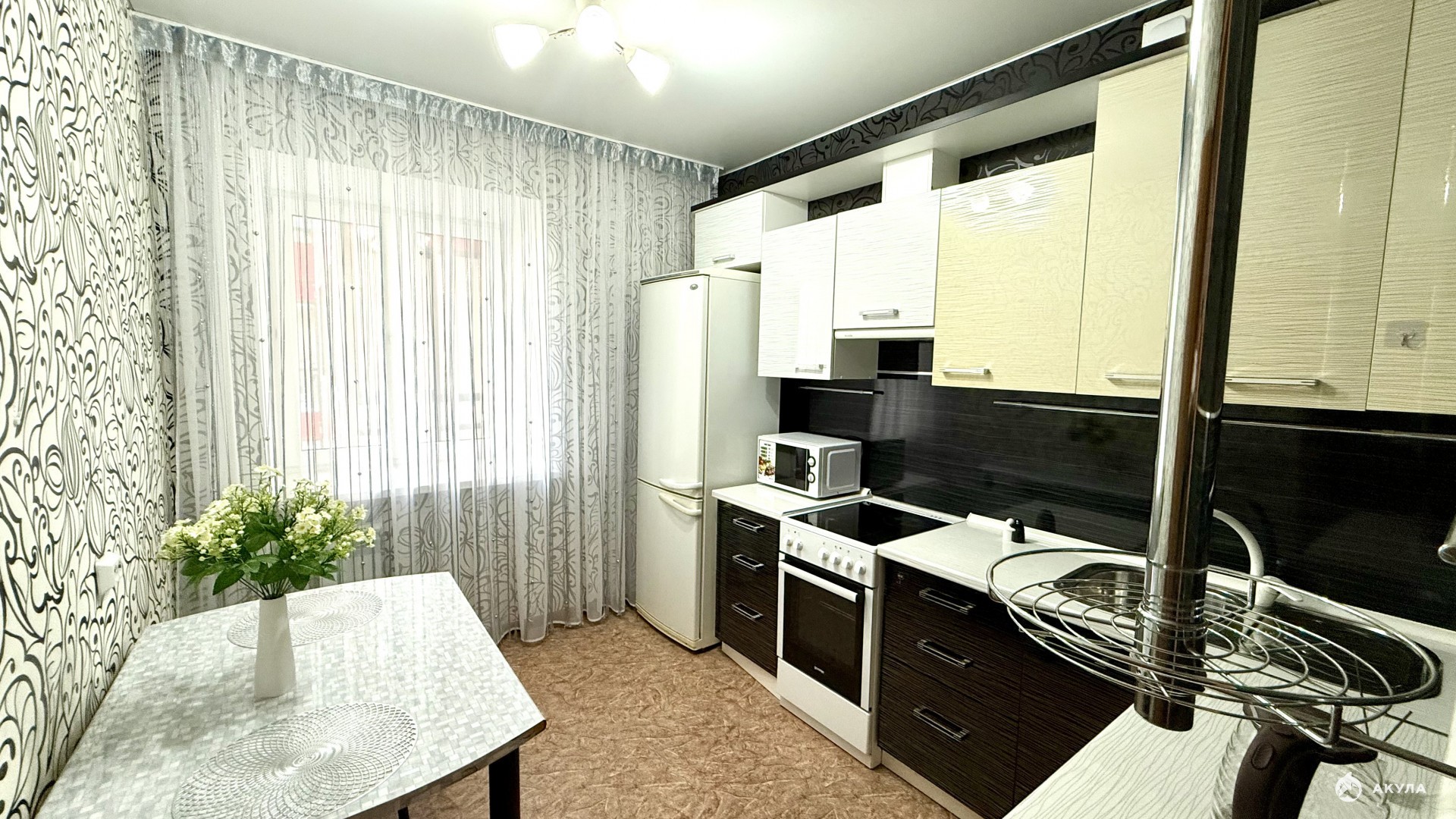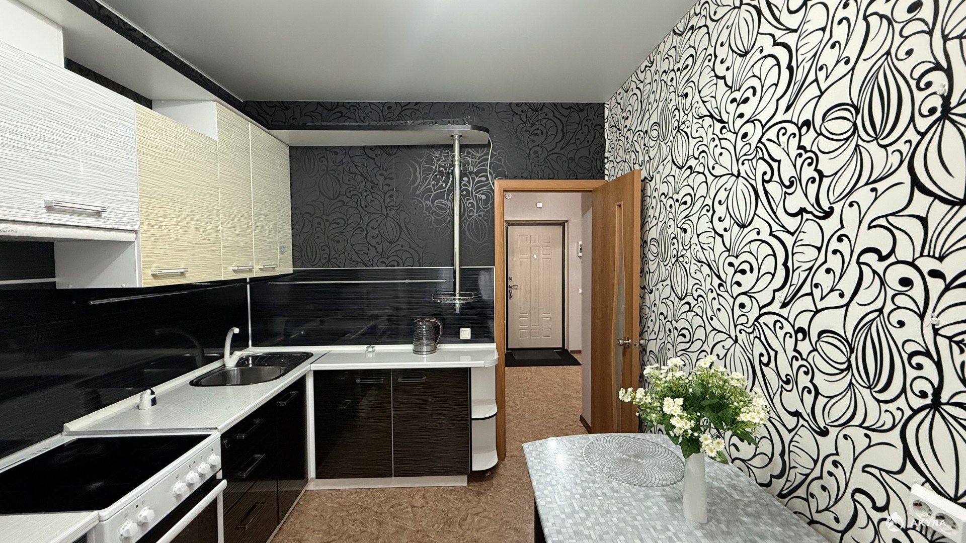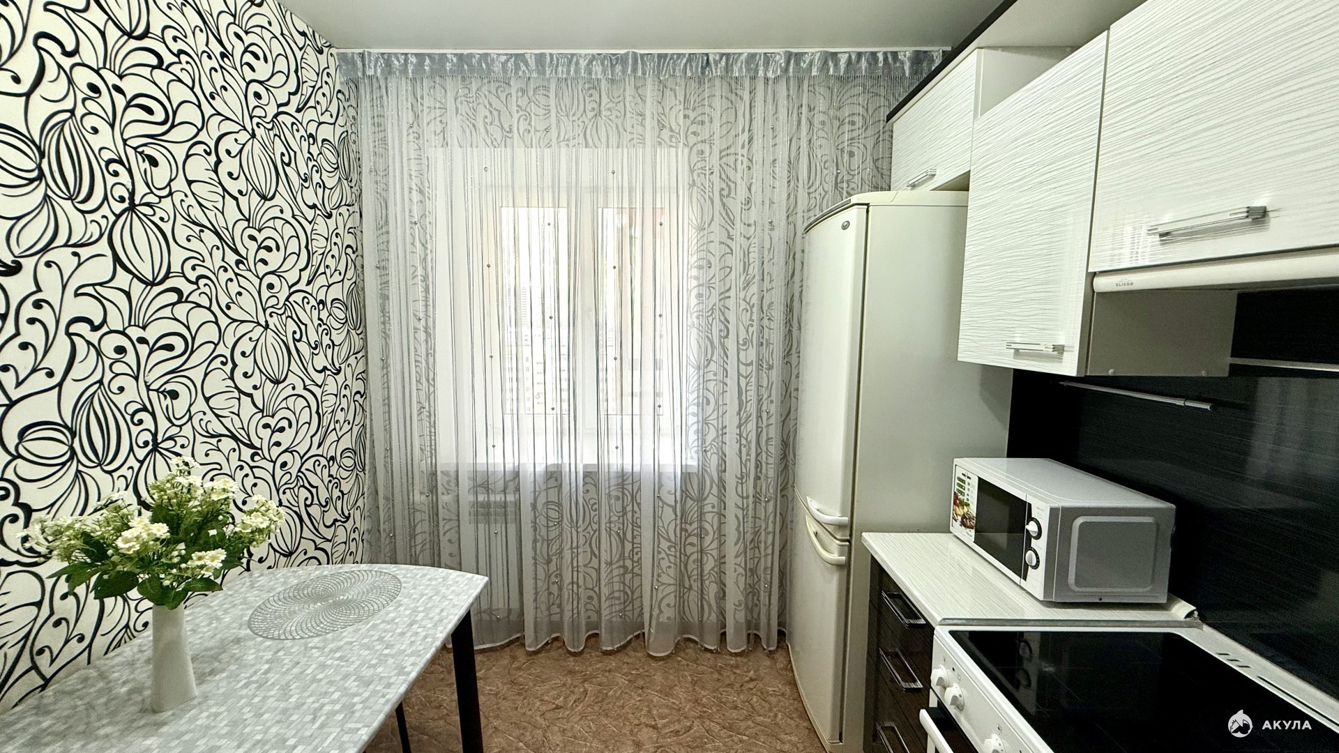 В квартире остается кухонный гарнитур с техникой, вся мебель.