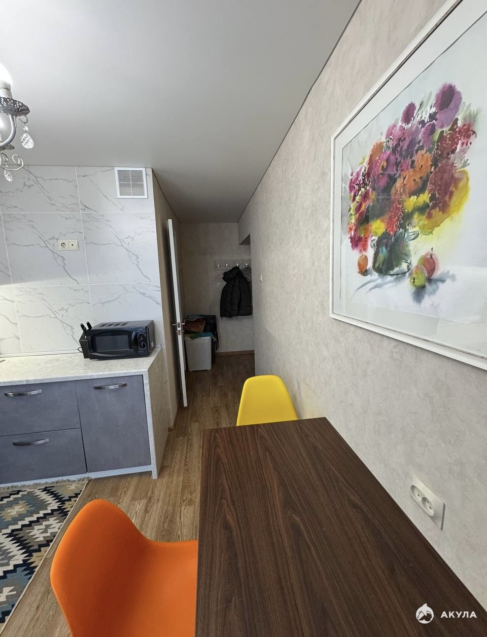В прихожей встроенный шкаф. Квартира теплая, светлая, с хорошей энергетикой.