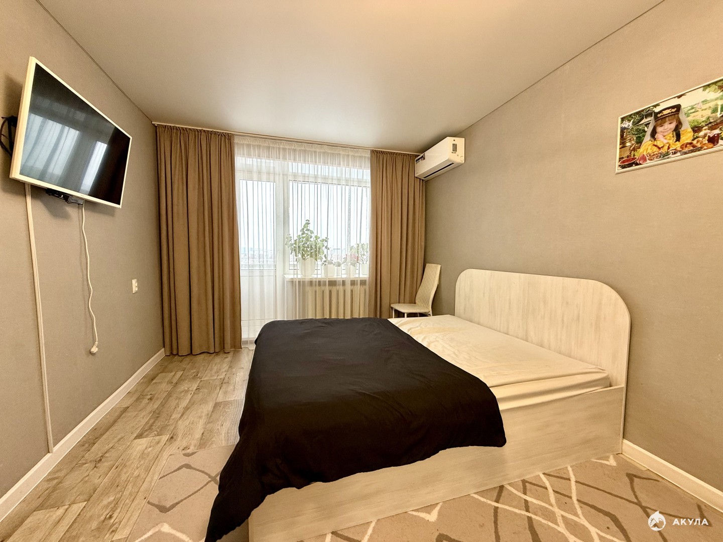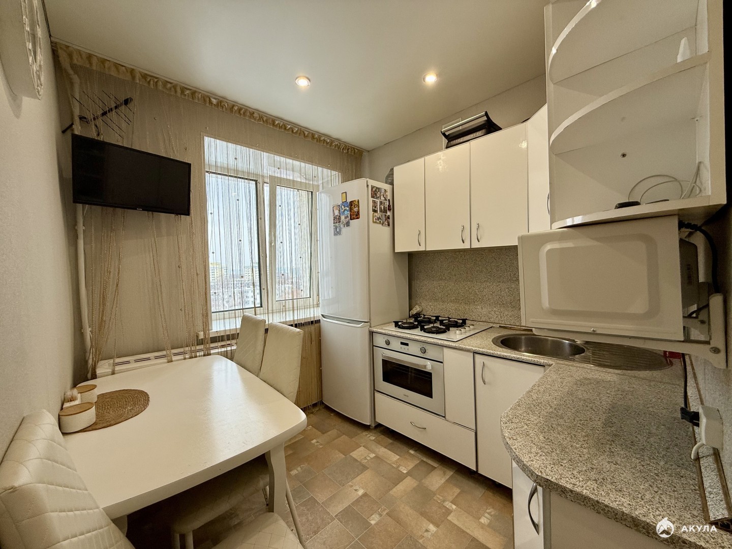 Частично остается мебель, встроенный шкаф , кондиционер , кухонный гарнитур с техникой