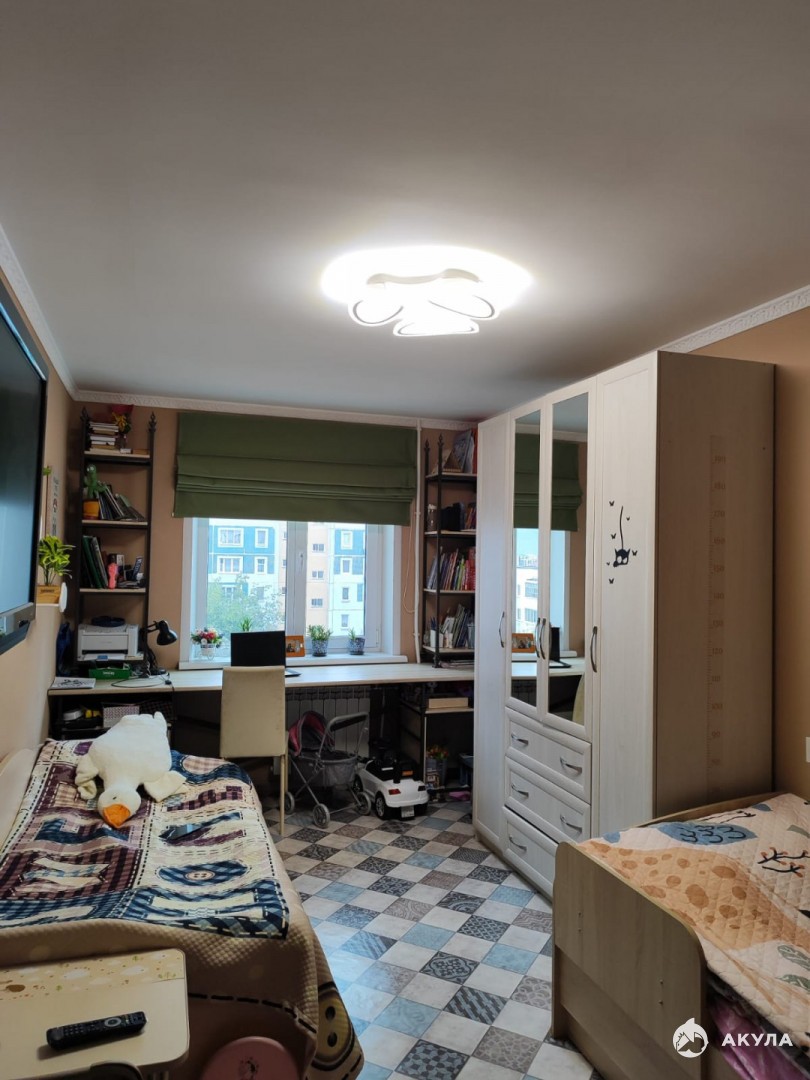 В квартире произведена шумоизоляция потолков и стен, тройной стеклопакет в детской комнате, окна в гостиной и на кухне выходят на балкон.