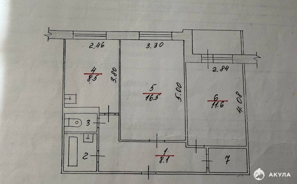 Общая площадь: 50, 6 м²