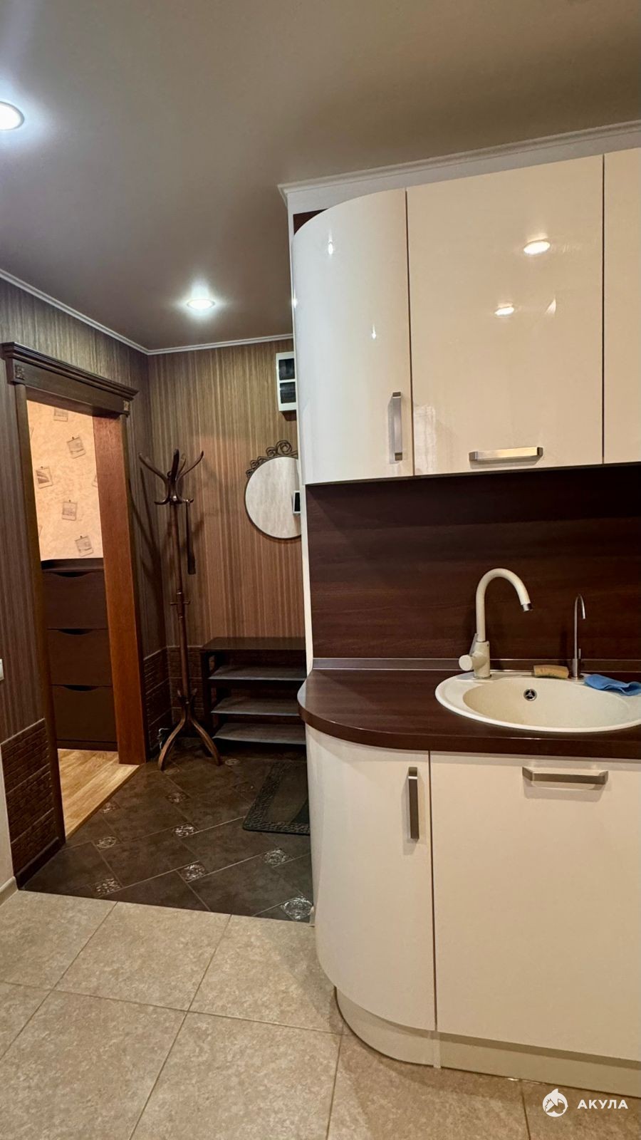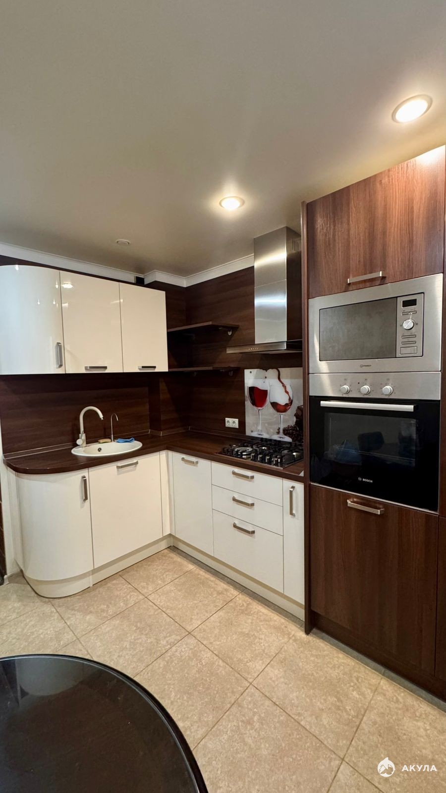 Кухня: Бренд LORENA, полностью интегрированная техника холодильник, духовка, варочная панель, вытяжка, посудомоечная машина.