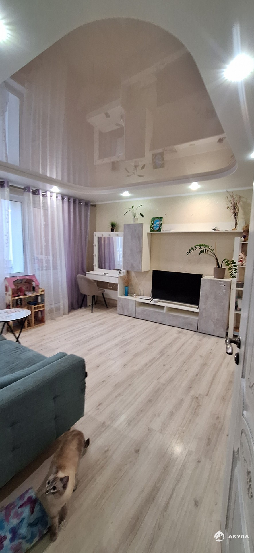 В квартире сделан качественный ремонт для себя. Пласт окна, ламинат, дизайнерские натяжные потолки, душевая кабина, очень красивые двери. Установлен бойлер.