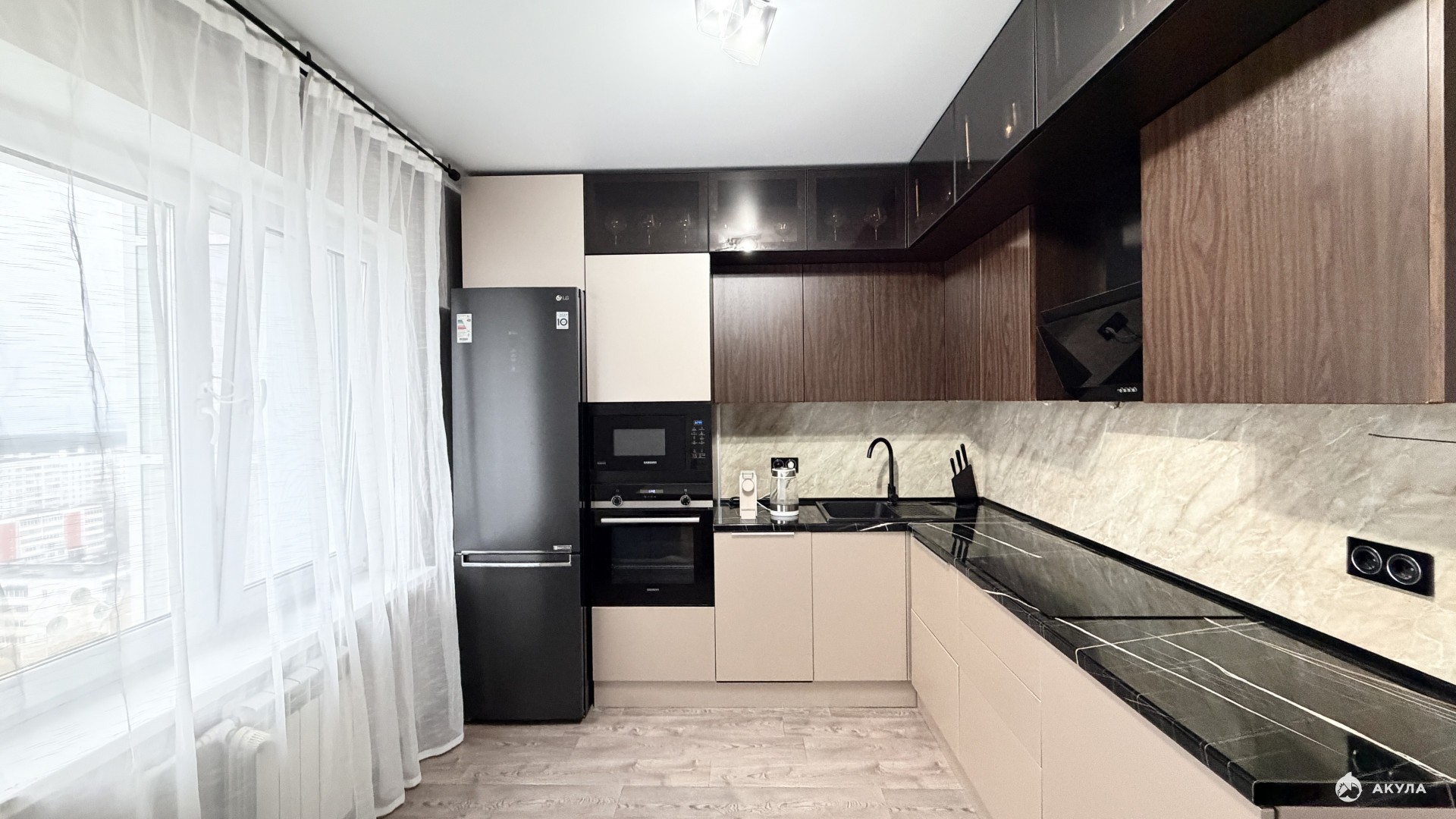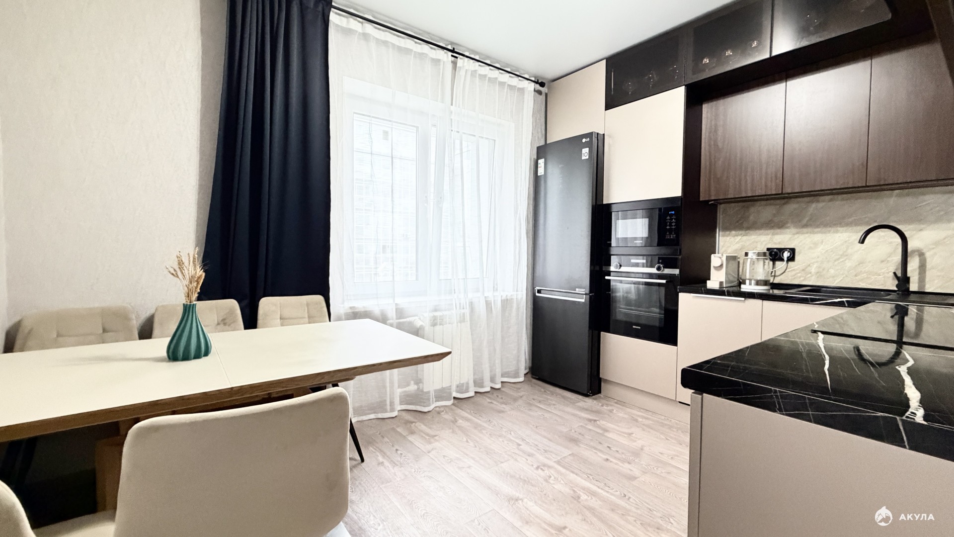 В квартире остается: кухонный гарнитур с техникой индукционная варочная панель Hotpoint -Ariston духовой шкаф Siemens посудомоечная машина Siemens встроенная микроволновая печь Samsung, вытяжка, кондиционер, 2 просторных встроенных шкафа в коридоре, мебель в ванной.