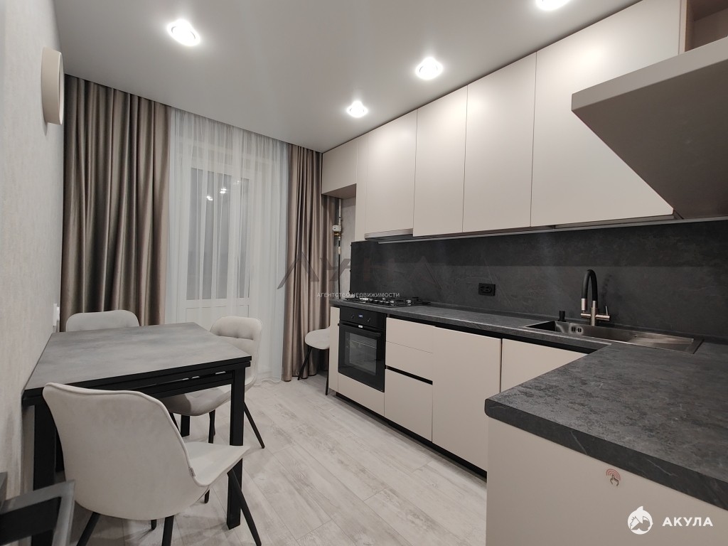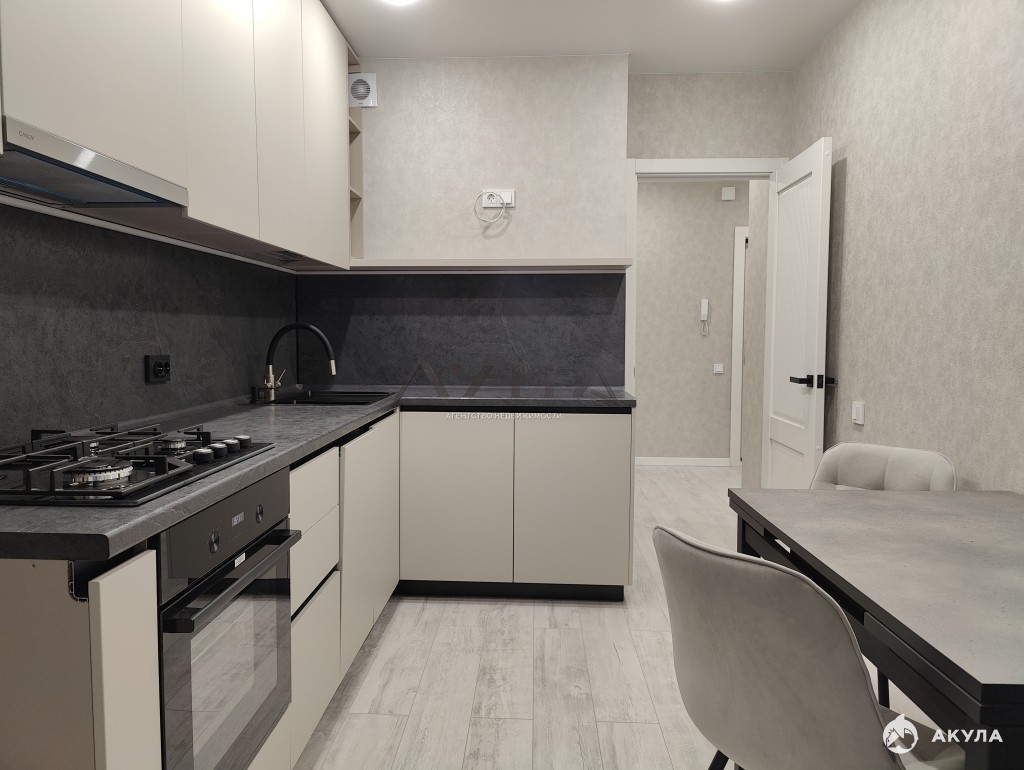 В квартире сделан качественный ремонт, остаётся новый кухонный гарнитур с техникой ( варочная панель, духовой шкаф, вытяжка, посудомоечная машина), стол, стулья, диван, установлен бойлер.