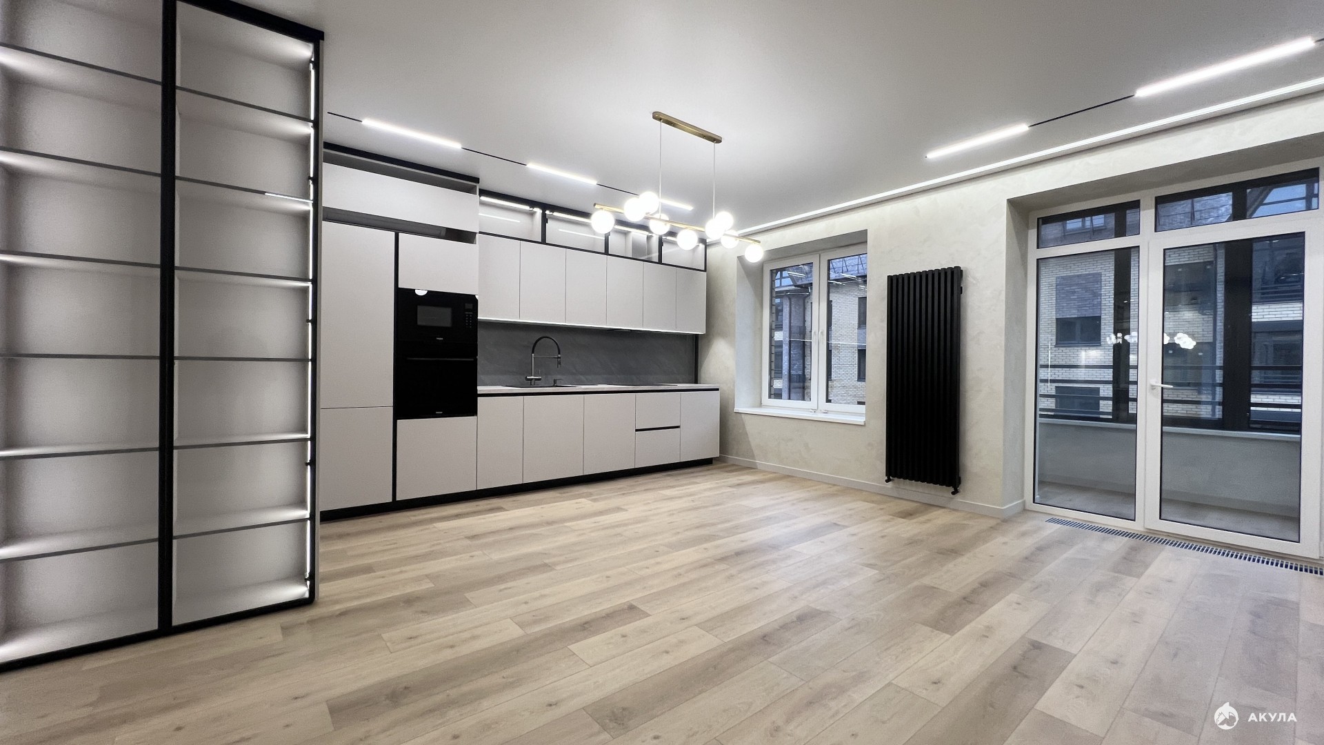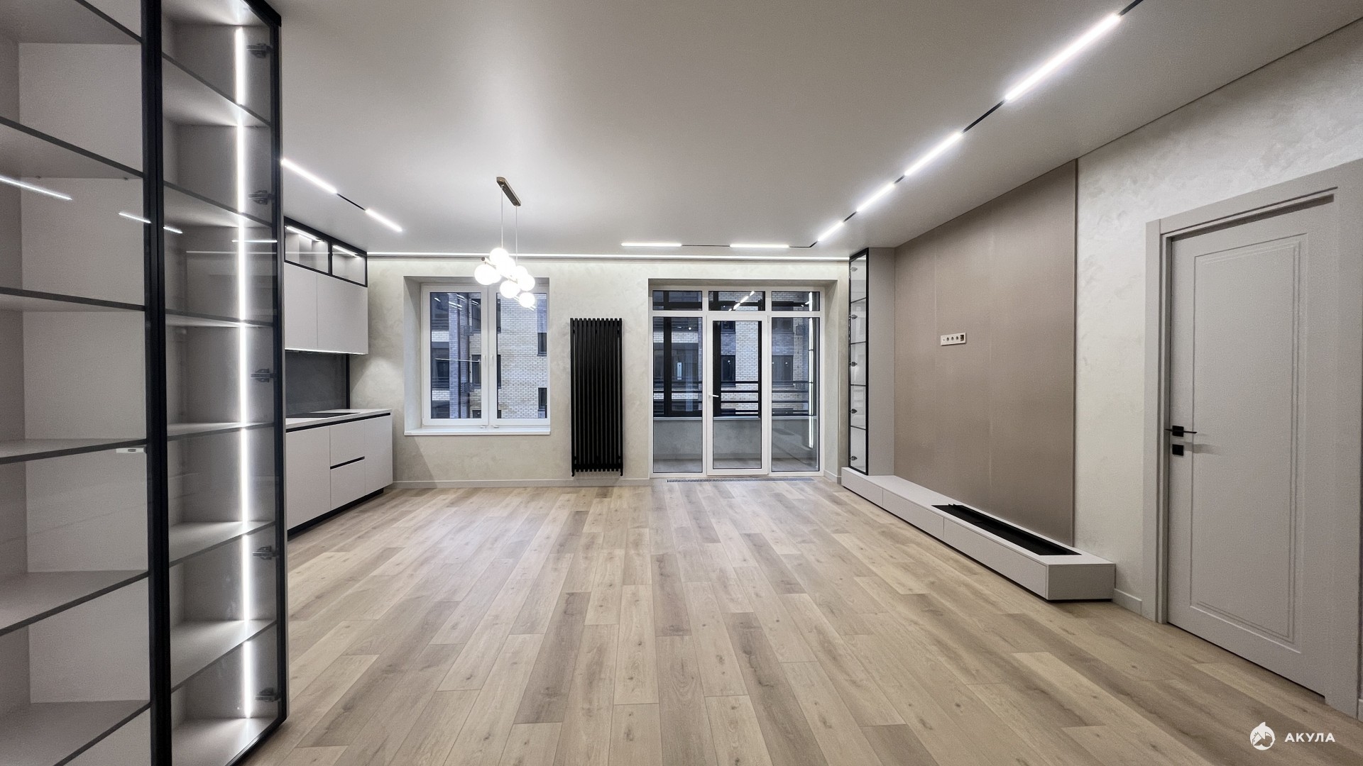 балкон декоративная штукатурка, пол: квар-винил, освещение