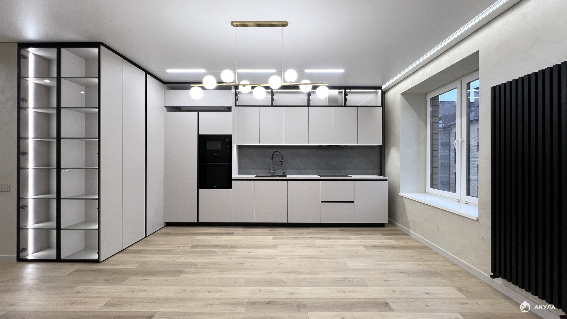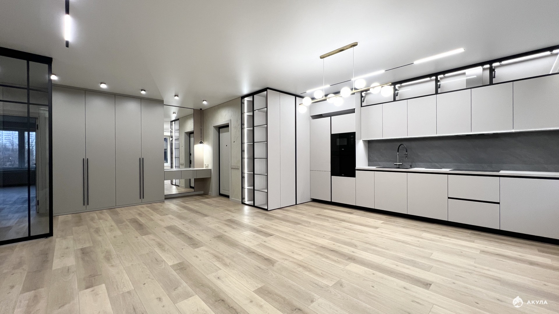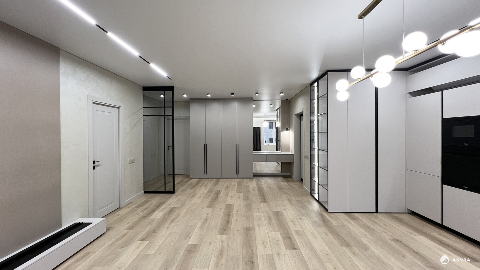Сделали качественный ремонт по дизайн проекту:полы: кварц-винил SPC влагостойкий, устойчивый к ударам и повреждениям, верхний декоративный слой реалистично имитирующий натуральные материалы
