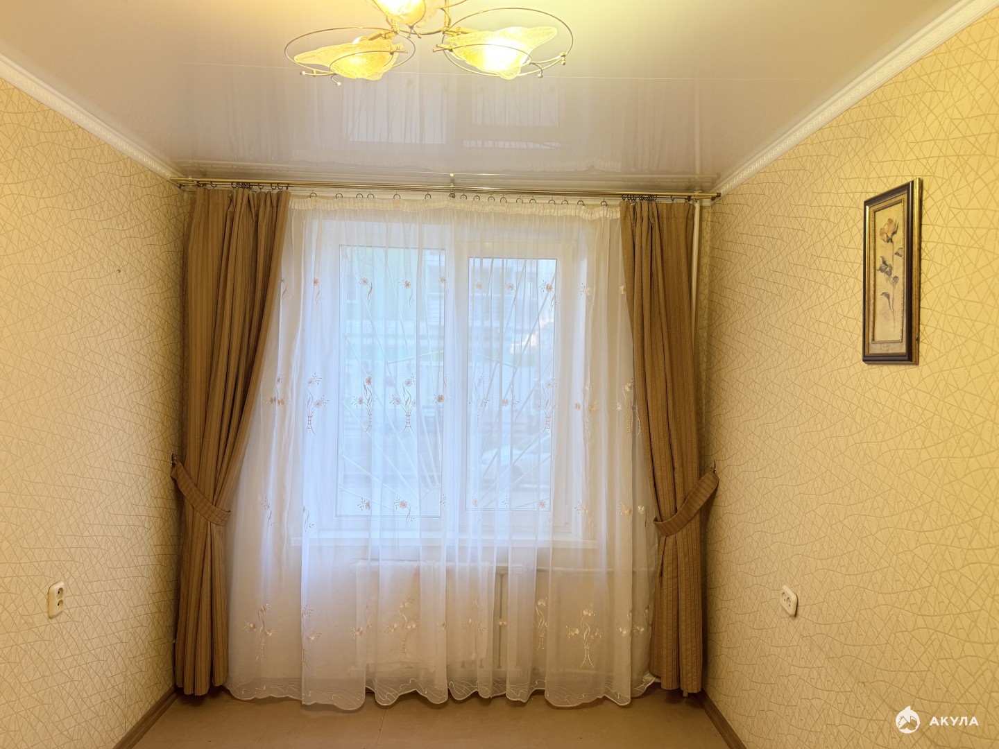 Квартира в среднем состоянии, но чистая, расположена на первом этаже, для спокойствия сделаны решетки на окнах. Площадь с учетом лоджии 58, 7 кв.м. В зале установлена гибсокартонная перегородка, поэтому комнаты не проходные, изолированные.