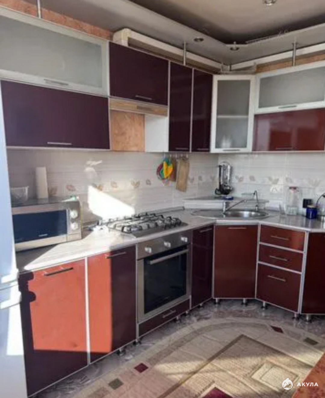 Кухня: Кухонный гарнитур холодильник, плита, вытяжка, стиральная машина, микроволновка.
