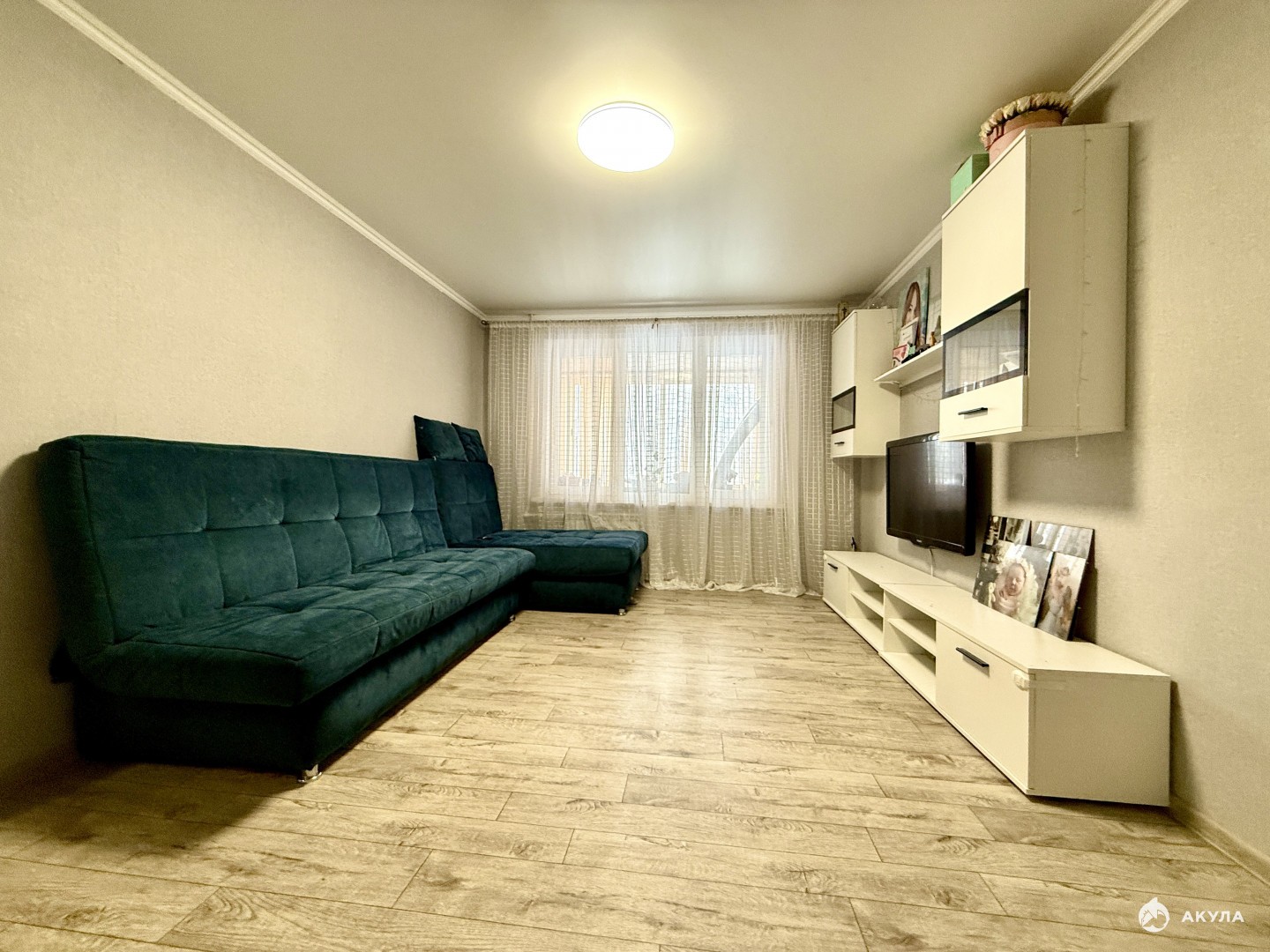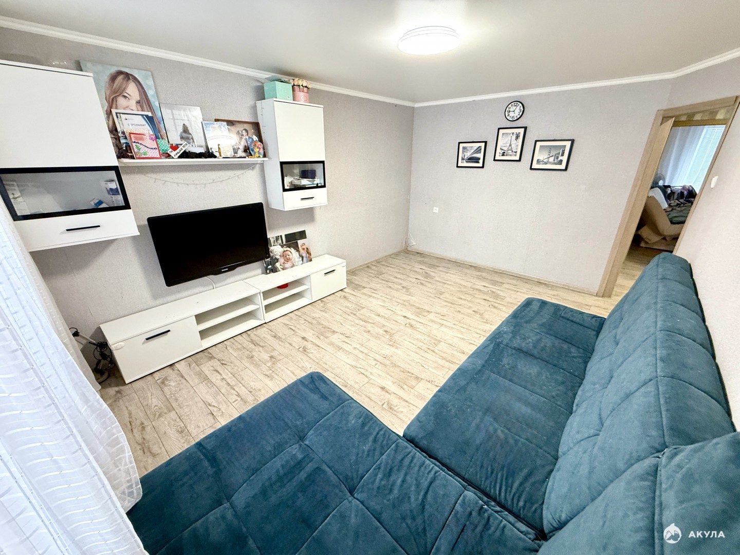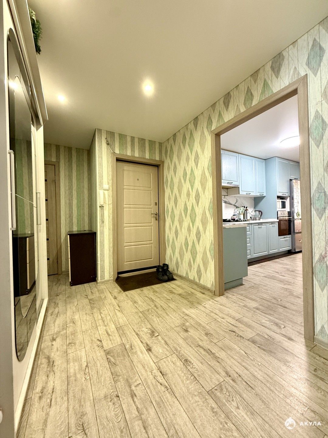 Обшитый шестиметровый балкон, есть и гардеробная со встроенными полками