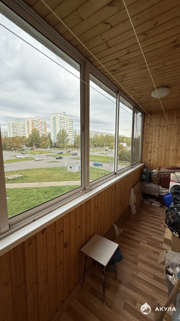 Kвapтиpa имеет общую площадь с учетом лоджий 94, 6 кв.м. Две лоджии, выход с гостинной и одной из спален, обшиты деревом, алюминевые рамы, смотрят в сторону проспекта Московский,