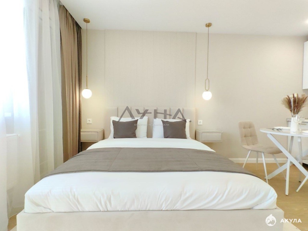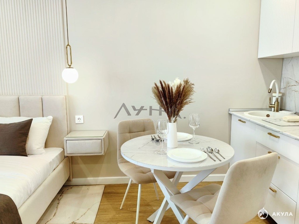В этой квартире продумана каждая деталь.Современный интерьер с качественной отделкой, техника, мебель -все включено. Продумано до мелочей:эргономическая кухня, уютная спальня, стильная гостиная - и это все на 27 кв.м.