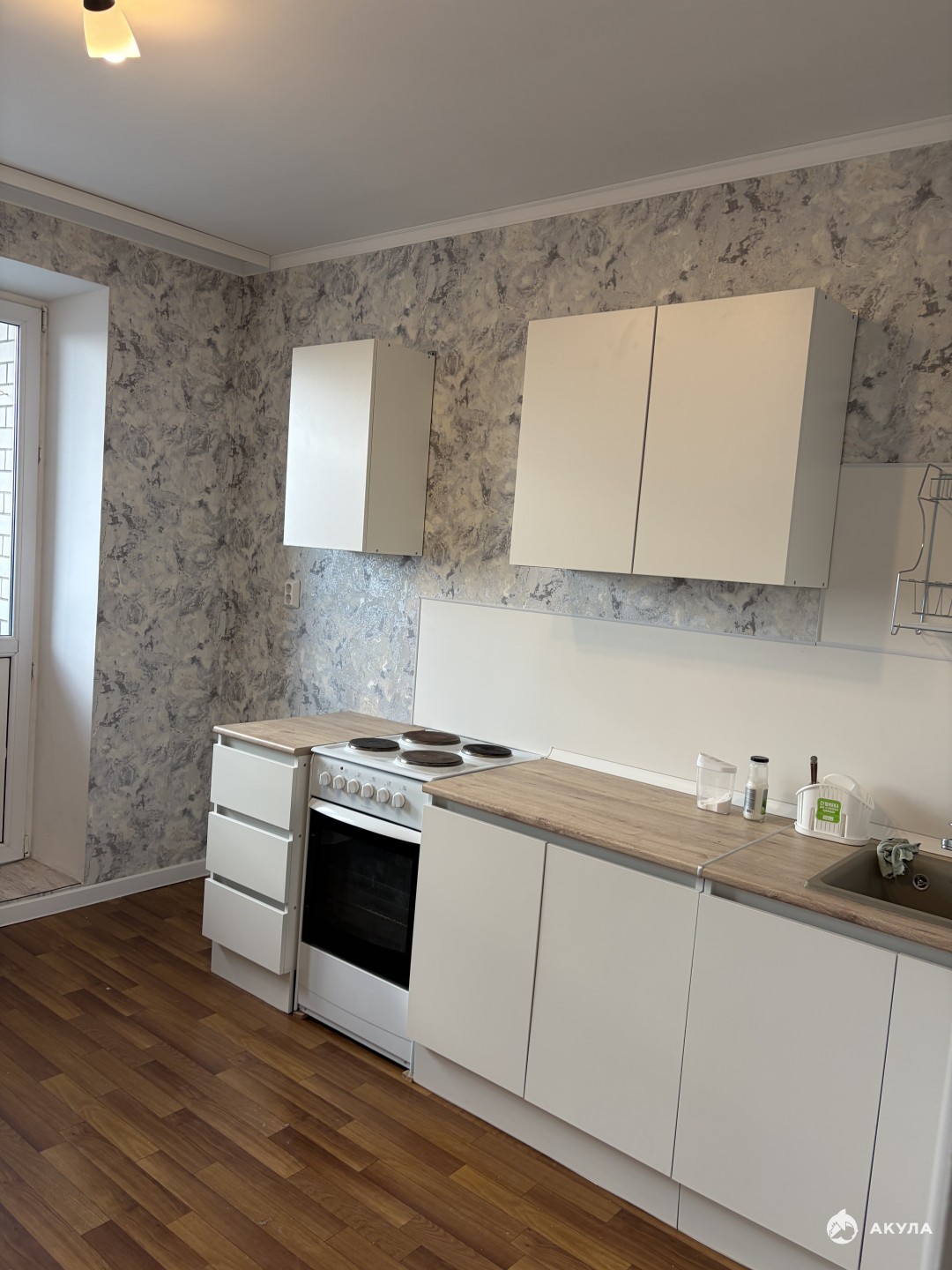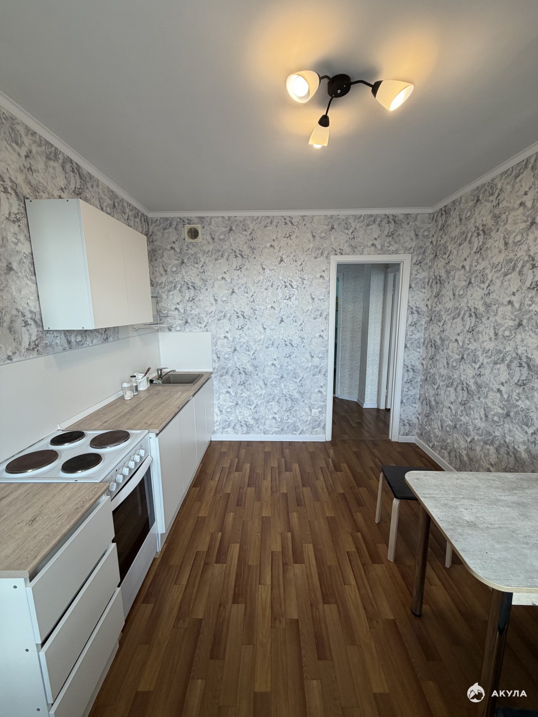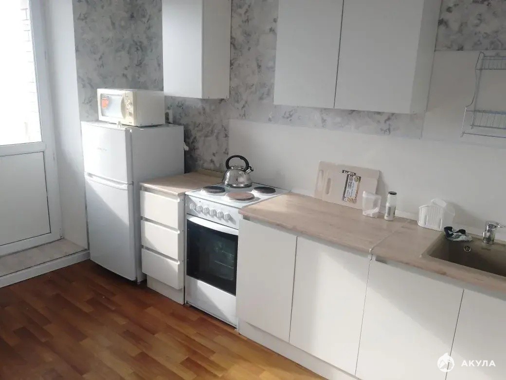 В квартире установлен новый кухонный гарнитур, стол со стульями, есть холодильник, микроволновая печь, чайник, набор посуды. В прихожей большой вместительный шкаф, в комнате диван, тумба под телевизор с этажеркой, на днях будет телевизор.