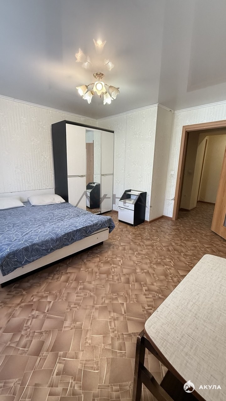Все в квартире есть: кухня с техникой, телевизор, холодильник, стиральная машина, диван, стол и стулья, шкаф.